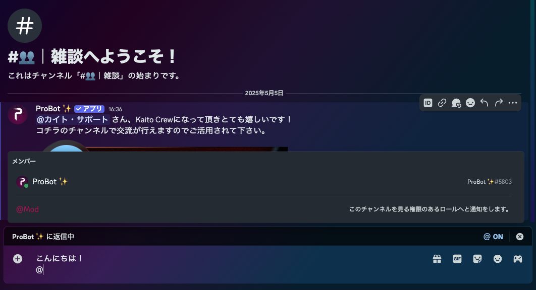 これで カイト・サポート Discordコミュニティに参加完了です。